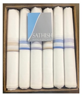 All sathish handkerchiefs are made of cotton, and if customer asked to do production of polyester cotton blended kerchief also. And raw material used to be strongest and most resilient cotton in the world. They can be washed in hot or cold water along with your white laundry. Using bleach (if you desire) in your wash will not affect them whatsoever and the sathish handkerchief logo will not fade. The most amazing thing that you will find is that they get softer and softer after every wash.